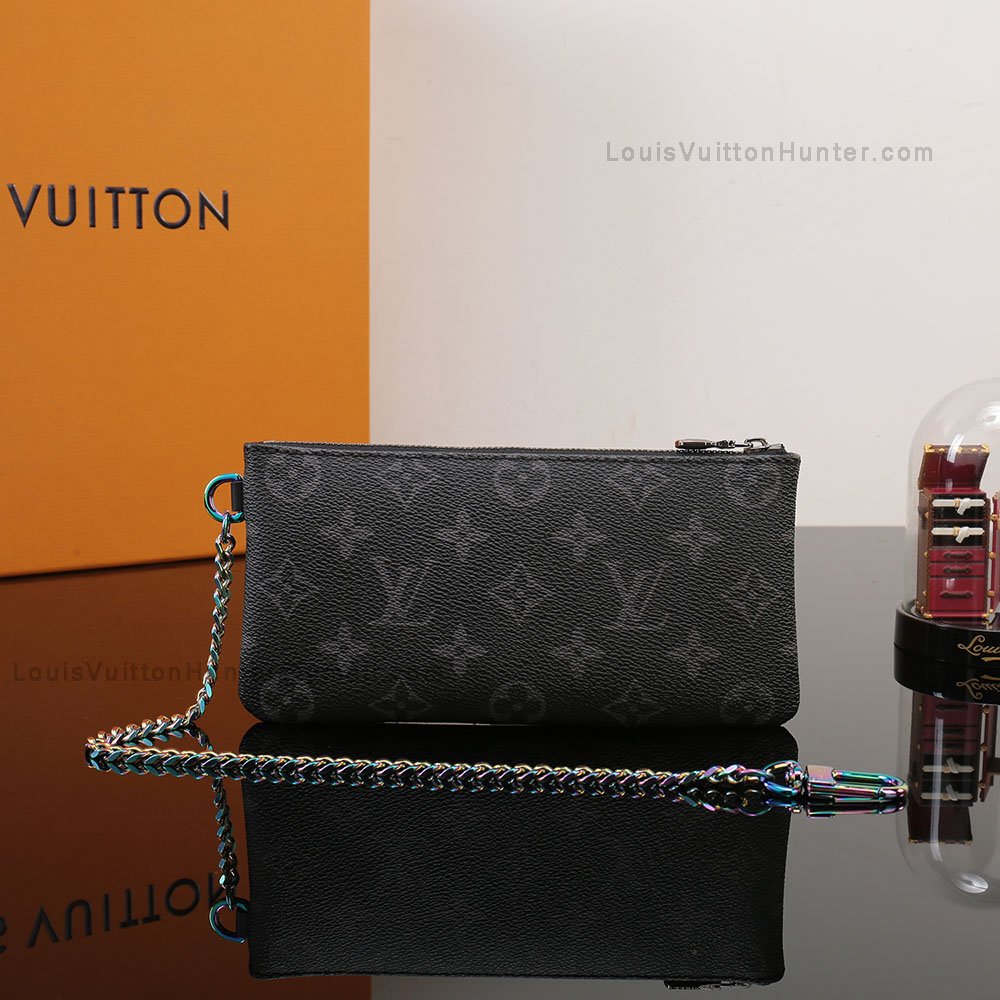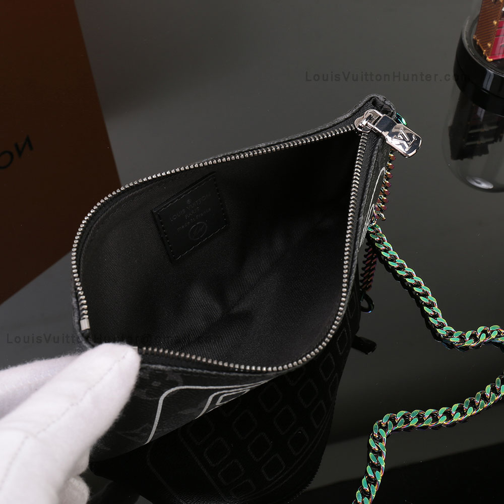 Monogram Eclipse coated canvas exteriorTextile liningRuthenium and Rainbow colored metallic pieces Zip closureRemovable metallic chainW20 X H10 cmW7.87 X H3.94 inches
