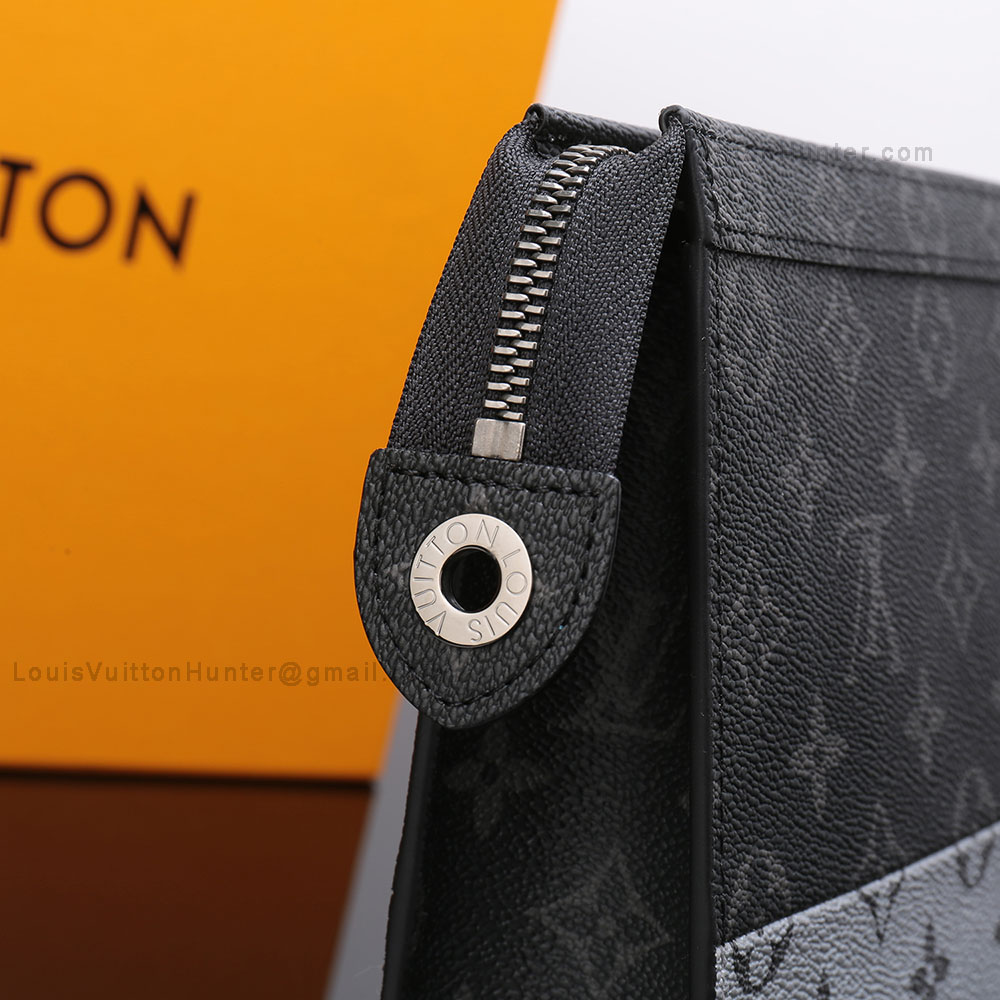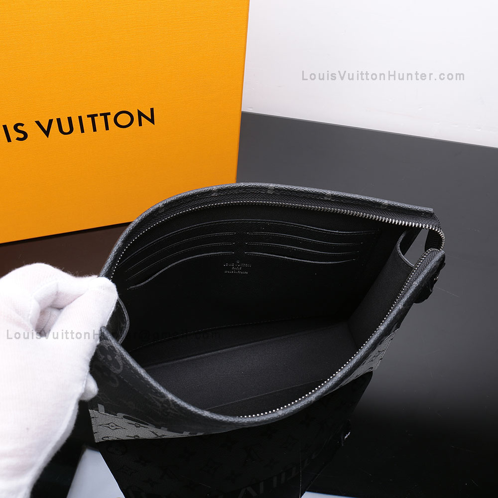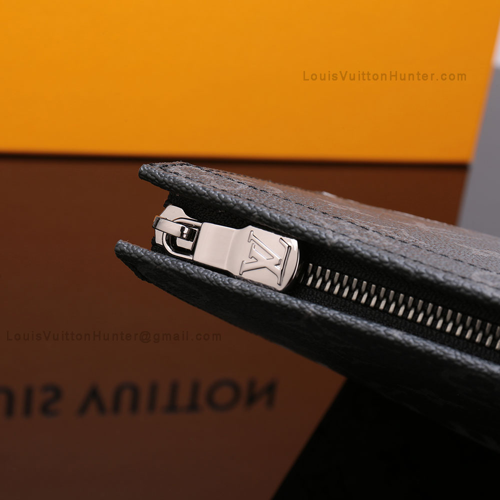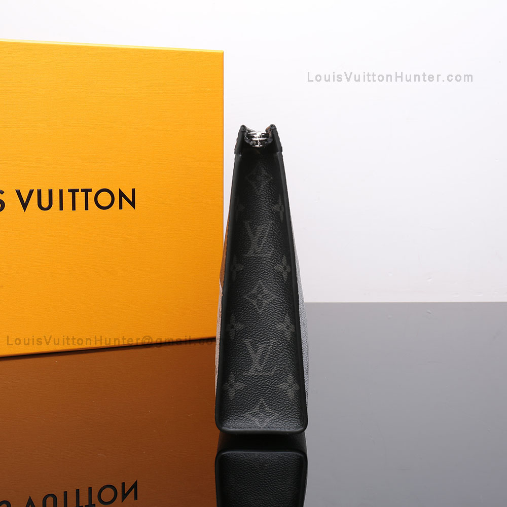 10.6 x 8.3 x 2.0 inchesMonogram Eclipse Split coated canvasCowhide leather liningSilver colored metallic piecesZip closing system1 flat internal pocket6 internal credit card slots