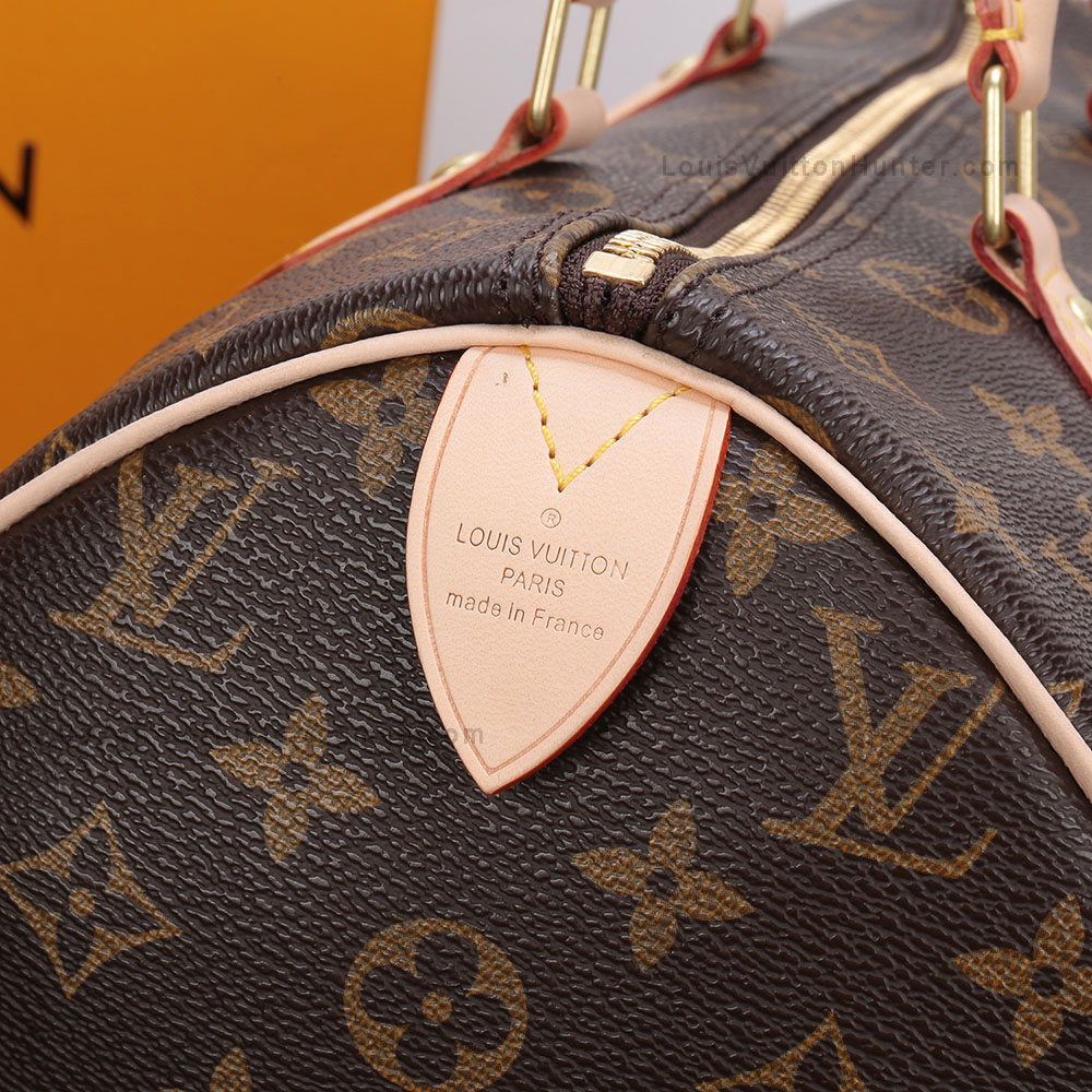 30 x 21 x 17 cm ( length x height x width ) 11.8 x 8.2 x 6.6 in Golden color metallic pieces Elegant hand carry Zip closure and padlock Rounded handles and trimmings in natural cowhide leather